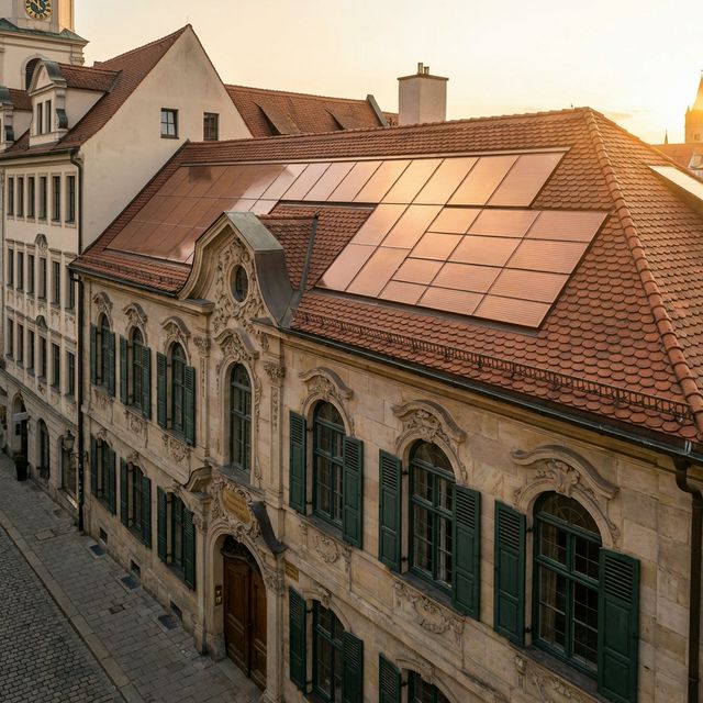 Seit Juni 2023 ermöglicht das Bayerische Denkmalschutzgesetz Photovoltaik auf geschützten Gebäuden. Farblich angepasste Module, rahmenlose Systeme, Indach-Lösungen.